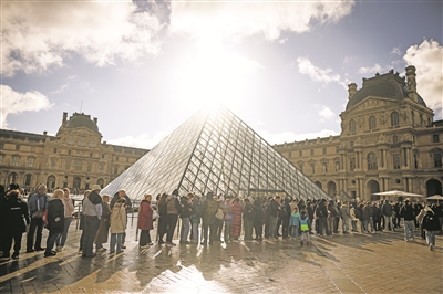 10月26日,大量游客排队进入法国巴黎卢浮宫博物馆。 新华/传真