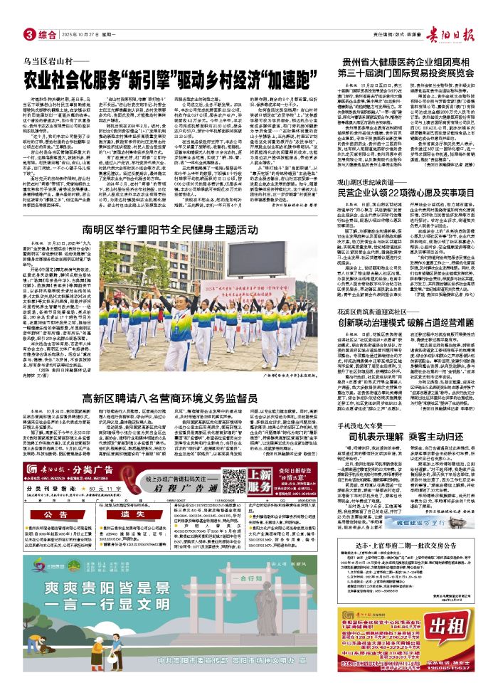 本报讯 10月23日,2025年“九九重阳”全民健身主题活动(贵阳分会场)暨南明区“奋进新征程 运动促健康”全民健身志愿服务活动在南明区财富广场举行。 开场《中国龙》舞龙表演气势恢宏,