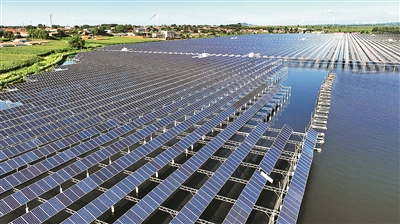 2025年7月30日在辽宁省铁岭市铁岭县大青水库拍摄的光伏发电板(无人机照片)。