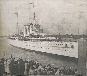 萨福克舰抵达朴茨茅斯港口。