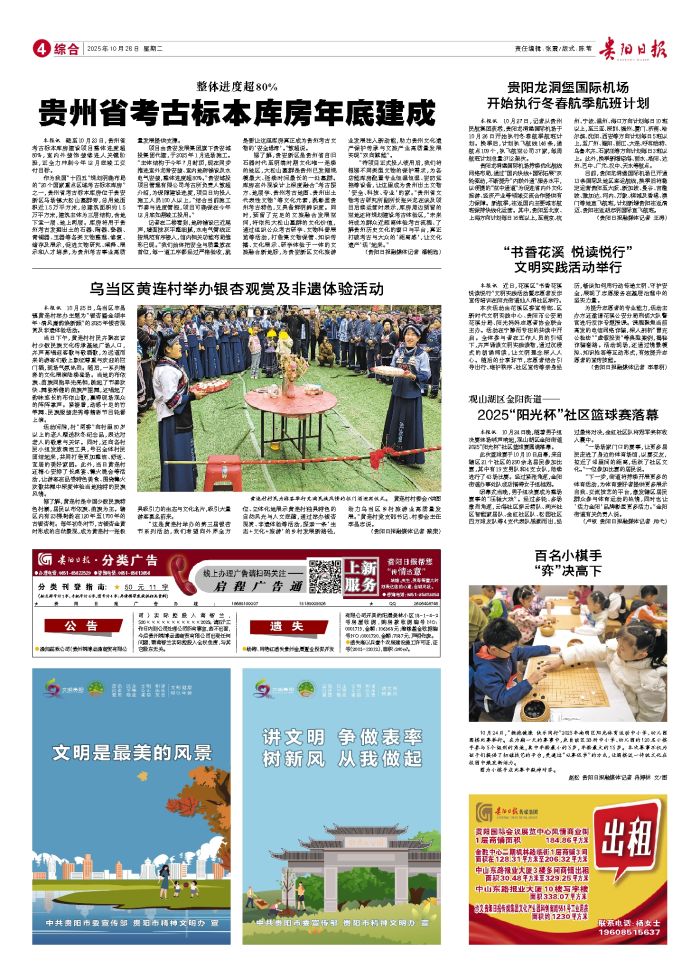 本报讯 10月25日,乌当区羊昌镇黄连村举办主题为“银杏鎏金颂丰年·清风廉韵焕新颜”的2025年银杏观赏及非遗体验活动。 当日下午,黄连村村民齐聚在该村少数民族文化传承基地广场入口,齐