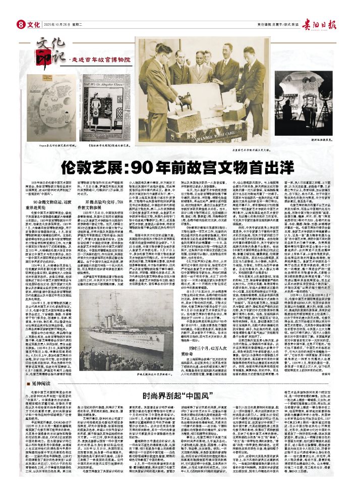1935年举办的伦敦中国艺术国际展览会,是故宫博物院文物珍品首次出国展览,在当时欧洲时尚界刮起了一股强劲的“中国风”。 90余箱文物启运,远渡重洋赴英伦 伦敦中国艺术国际展览会,缘