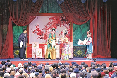 重阳节到来,各地举行丰富多彩的活动,展示老年人风采,倡导尊老、敬老、爱老的传统美德。图为10月27日,在甘肃省平凉市静宁县体育场,群众观看来自陕西省戏曲研究院的演员表演秦腔。 新华/传真