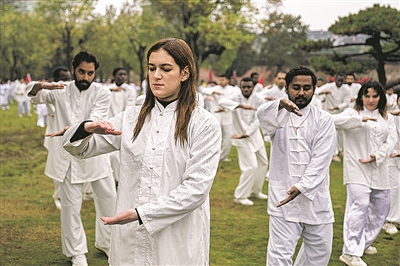 10月25日,2025国际武当太极文化节在湖北省十堰市武当山旅游经济特区开幕。本次活动以“天下太极会武当 武当太极和天下”为主题,除开幕式外,还将举办名家大讲堂、国际旅行商合作交流、武当山太极之夜文旅消费周等十余项活动。图为国外太极爱好者在开幕式上表演。 新华/传真