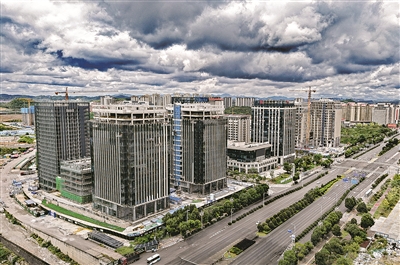 10月28日,记者在贵阳大数据科创城核心区的科创城·数字经济港项目A区建设现场了解到,项目已进入收尾冲刺阶段,外墙玻璃安装基本完成,正朝着年底建成交付的目标全力迈进。作为贵阳贵安融合发展核心区重点项目、“东数西算”工程支撑载体,该项目涵盖五个区域,规划有商业、公寓、办公三大业态,当前在建的A区包含5个地块、15栋楼,其中4栋已建成投用。作为投资建设单位,贵安产控集团始终坚持“项目为大、项目为重、项目为王”,全力保障资金、破解堵点,确保项目早日建成投用,为数字经济发展筑牢载体根基。