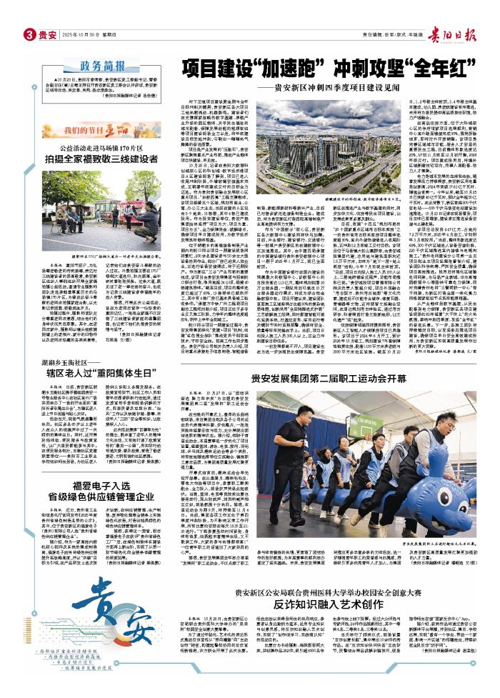 时下正值项目建设黄金期与全年目标冲刺关键期,贵安新区各大项目工地热潮涌动、机器轰鸣。建设者们在支撑国家战略的数字基建、承载产业升级的园区载体、关乎民生福祉的城市配套、保障发展动能的能源枢纽等项