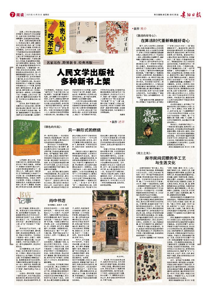 近期,人民文学出版社推出多种新书,既有当代文坛名家新作,也有古典文学和传统文化的阐释著作,还有经典作品的再版。 莫言、王振的随笔集《放宽心,吃茶去》以散文、诗歌、摄影的形式记录日常,形成