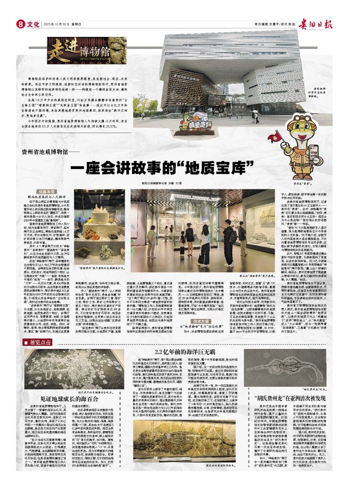 贵阳日报融媒体记者 刘健 文/图 博物馆是保护和传承人类文明的重要殿堂,是连接过去、现在、未来的桥梁。而在守护文明根脉、连接时空对话的博物馆矩阵中,贵州省地质博物馆以其鲜明的地质特色独树