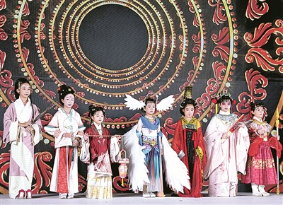 10月29日,中国文明乡风大会全国移风易俗优秀文艺节目展演在陕西延安举办。选自全国多地的优秀文艺节目在延安大剧院上演,展现移风易俗新风尚。图为演员在全国移风易俗优秀文艺节目展演上表演京剧小戏《婚姻大事》。 新华/传真