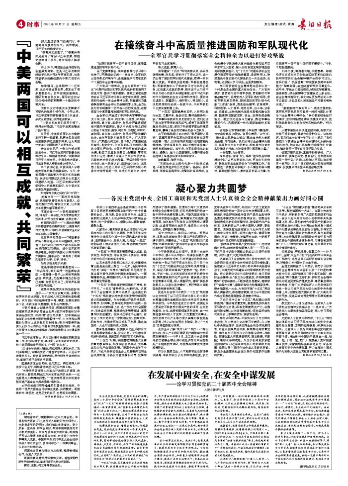人民日报评论员 安全是发展的前提,发展是安全的保障。党的二十届四中全会把“坚持统筹发展和安全”列为“十五五”时期经济社会发展必须遵循的一条重要原则,把“国家安全屏障更加巩固”列为主要目标