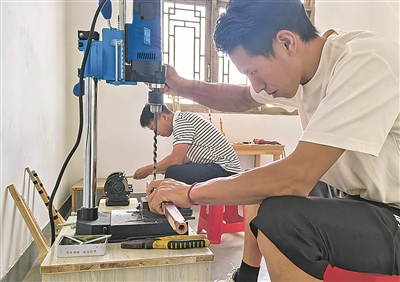 工坊师傅在制作芦笙。
