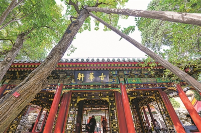 探秘乾隆花园,需从衍祺门进入。不同于宫内一贯的轩敞,这里开门见山,便是个假山影壁。顺着假山中的曲径通幽处,到院落核心,最让人动容的是古华轩前的那株古楸树,轩名便取自这棵古树。每年4月中旬,淡紫色的花朵如云霞般铺满枝头,乾隆或许曾坐在轩内,看花开花落。