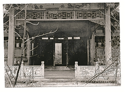 禊赏亭旧貌,栏杆装饰是符合《兰亭序》的竹子图案。