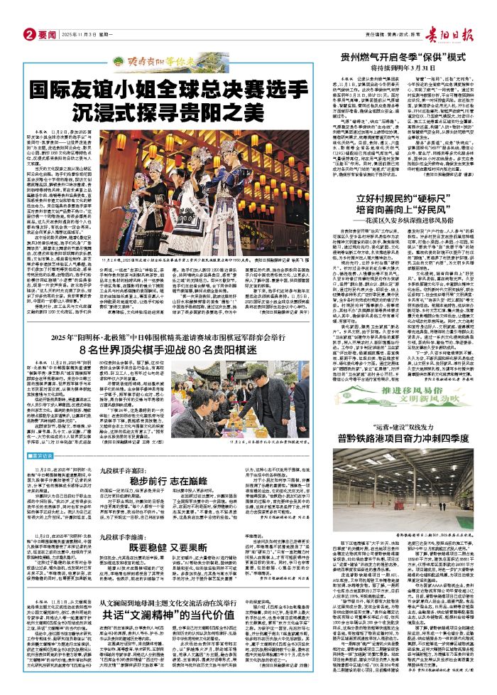 本报讯 11月2日,2025年“阳明杯·北极熊”中日韩围棋精英邀请赛“棋聚甲秀·承艺黔风”城市围棋冠军群弈会在甲秀楼举行。来自中日韩三国的围棋界嘉宾、世界冠军棋手与本土市民面对面交流,以棋为