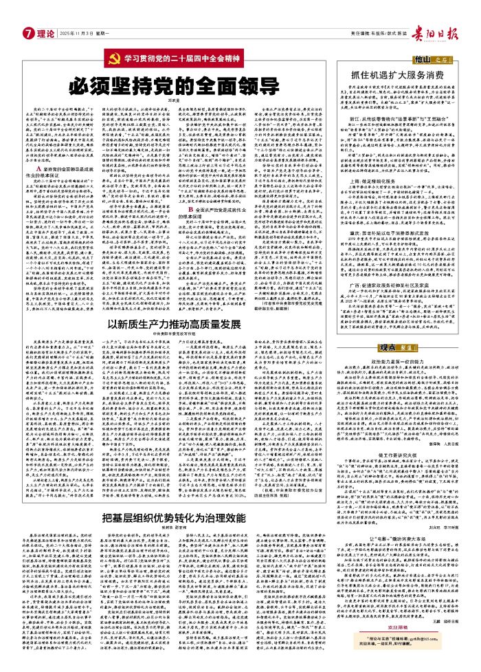 中共贵阳市委党校写作组 发展新质生产力是推动高质量发展的内在要求和重要着力点。从“十四五”时期积极培育壮大新质生产力的实践中,我们更能深刻理解为什么“十五五”时期要继续以推动高质量发展为