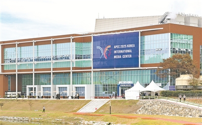 2025年10月31日在韩国庆州拍摄的亚太经合组织第三十二次领导人非正式会议新闻中心外景。