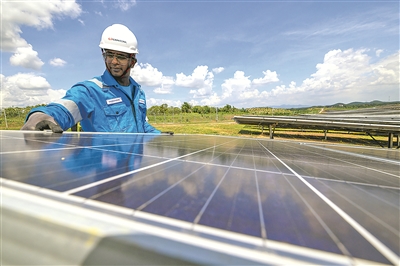 工人在马来西亚吉打州南部的瓜拉基蒂光伏电站检查设备(2024年6月6日摄)。