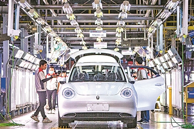 工人在位于泰国罗勇的长城新能源汽车制造基地生产车间内工作(2024年1月12日摄)。