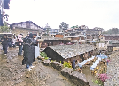 以明代屯军为背景的镇山村,是花溪军事屯堡遗址的典型代表。调研采访组一行沿着石巷,穿过石头寨门,踏着青石板,触摸古老的镇山屯石墙,参观传统民居石板房,切身体会镇山村作为“石板建筑的博物馆”的魅力。在“波波堂”“嘉谷山房”等艺术文创工作室,主理人介绍了“艺术进村,发掘在地文化”相关情况。“嘉谷山房”主理人谷佳俊介绍说,镇山村已集聚20多个艺术工作室,这些艺术家和文创主理人被聘为石板镇“智库”专家和闲置农房美学指导顾问,通过深挖当地建筑文化、屯堡文化、布依民族风情等文化资源,以艺术、文创的形式参与镇山村“一院一景、一户一韵”文化空间营建。“艺术家进入镇山村后,将闲置民居变身画室、陶艺工坊、影像工作室,带动蜡染体验坊、文化书屋等蓬勃发展,镇山村悄然蜕变为充满韵味的‘艺术聚落’,吸引众多游客慕名而来。”石板镇党委副书记、政法委员赵怡说。