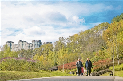 本报讯 随着气温渐凉,贵阳市双龙生态公园内的生态林开始披上秋装——日渐泛黄的银杏、渐染红晕的枫叶,与碧波荡漾的河面、蜿蜒曲折的木栈道,共同勾勒出一幅静谧而生动的秋日画卷,吸引众多市民、游客前来赏景。