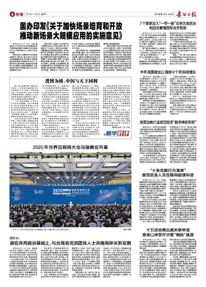 新华社北京11月7日电 日前,国务院办公厅印发《关于加快场景培育和开放推动新场景大规模应用的实施意见》(以下简称《意见》),对相关工作作出部署。 《意见》指出,场景是用于系统性验证新技
