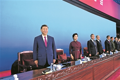 11月9日晚,中共中央总书记、国家主席、中央军委主席习近平在广东省广州市出席中华人民共和国第十五届运动会开幕式并宣布运动会开幕。 新华/传真