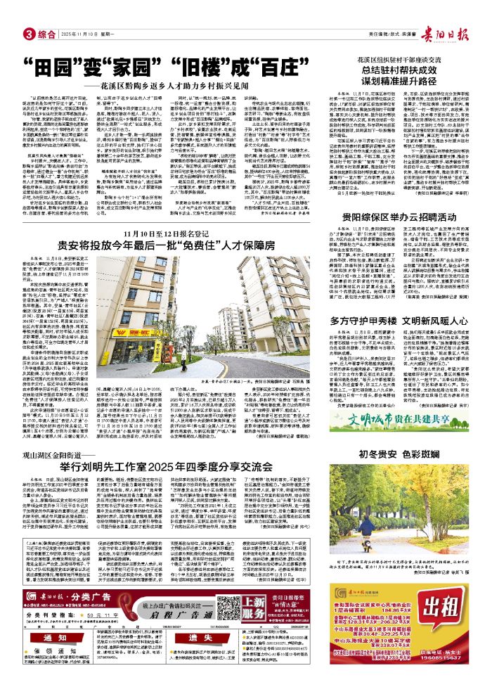 本报讯 11月8日,贵安新区党工委组织人事部发布公告,2025年最后一批“免费住”人才保障房共392间即将投放,线上申请登记于11月10日9:00开启。 本批次房源均集中在交通便利、管