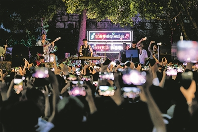 每周五,在云岩区文昌阁古城墙下,灯光与星光交相辉映,日晷广场上站满了翘首以盼的观众,准备享受一场激情四溢的音乐盛宴。