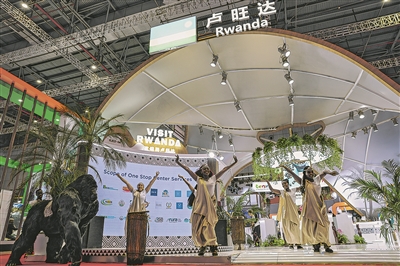 2025年11月5日,演员在第八届进博会国家展卢旺达馆表演舞蹈。