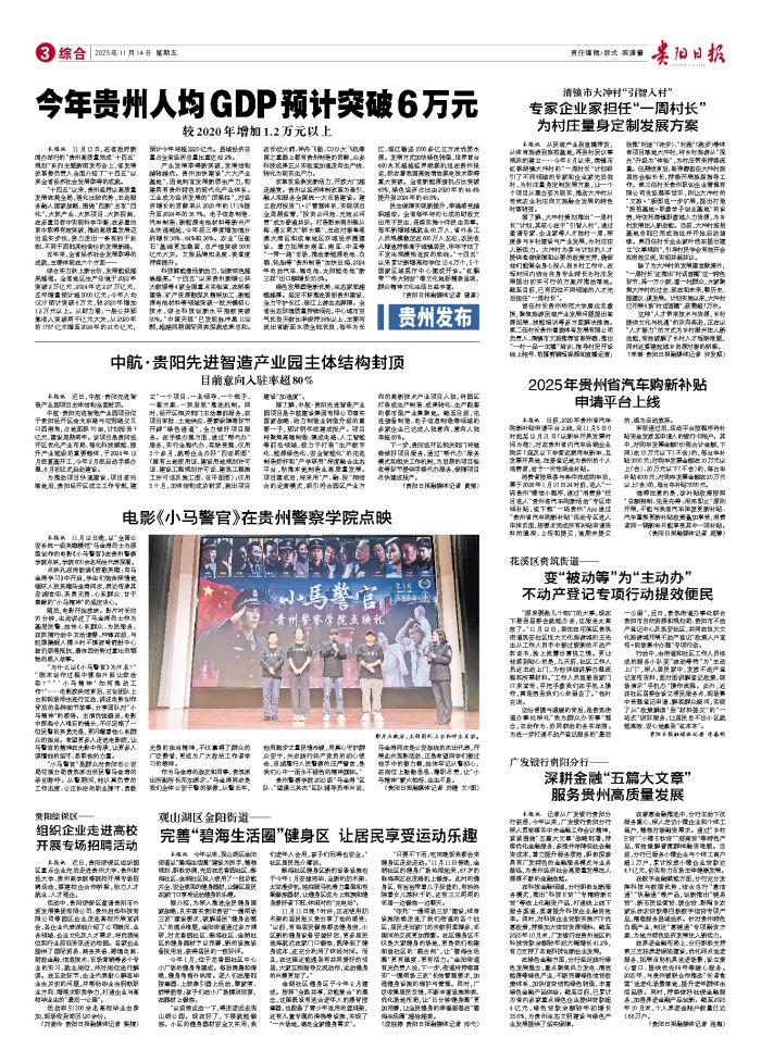 本报讯 从民宿产业到直播带货,从体育旅游到旅拍基地,再到村民议事规则的建立……今年8月以来,清镇市红枫湖镇大冲村的“一周村长”计划吸引了不同领域的专家和企业家先后驻村,为村庄量身定制发展方案