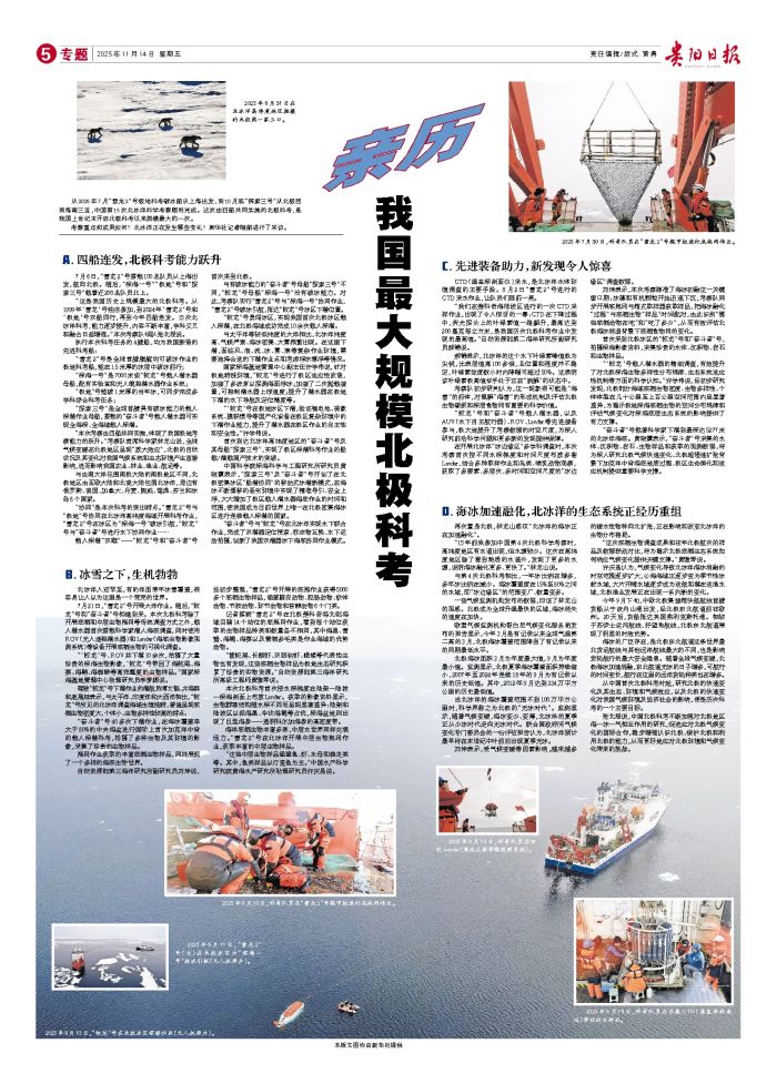 从2025年7月“雪龙2”号极地科考破冰船从上海出发,到10月底“探索三号”从北极回到海南三亚,中国第15次北冰洋科学考察顺利完成。这次由四船共同实施的北极科考,是我国上世纪末开启北极科考以来