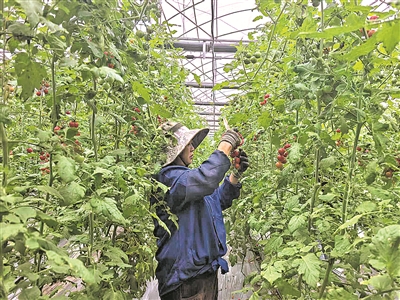 与此同时,在清镇市流长乡兴隆村,另一番丰收景象正在上演。冬日暖阳透过温室棚顶,洒在一排排翠绿的番茄植株上,红润饱满的小番茄如灯笼般垂挂枝头。