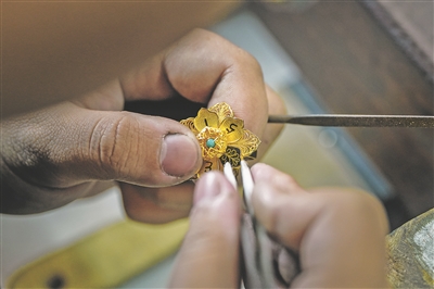 在昆明乌铜走银传习馆,金永才(右)指导弟子。