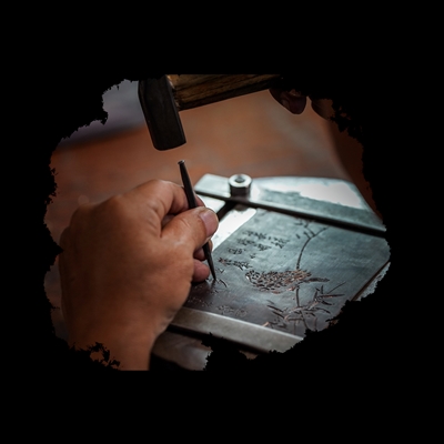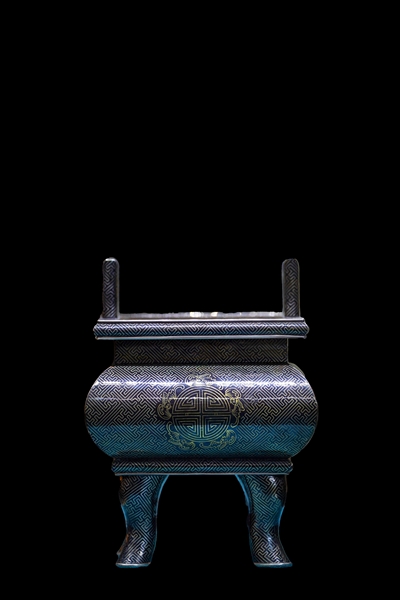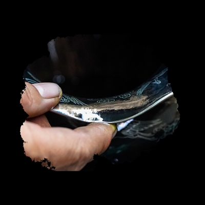 “走银”是火与金属的共舞。匠人依古法熔炼秘方,将铜料锻造成胎,再以细若秋毫的錾刀,在铜面勾勒出万千气象。当温度升至临界,银块融作流淌的月华,在匠人精准的引导下,这抹银亮如溪流汇入山谷,完美填充每一道刻痕。待银液凝固,经过细心打磨,银丝与乌铜浑然一体,在灯光下泛起温润的珠光,仿佛给冰冷的金属注入了温热的血脉。