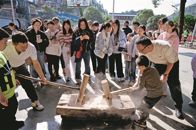 图为11月15日,清镇市卫城镇上水村举行打糍粑活动。