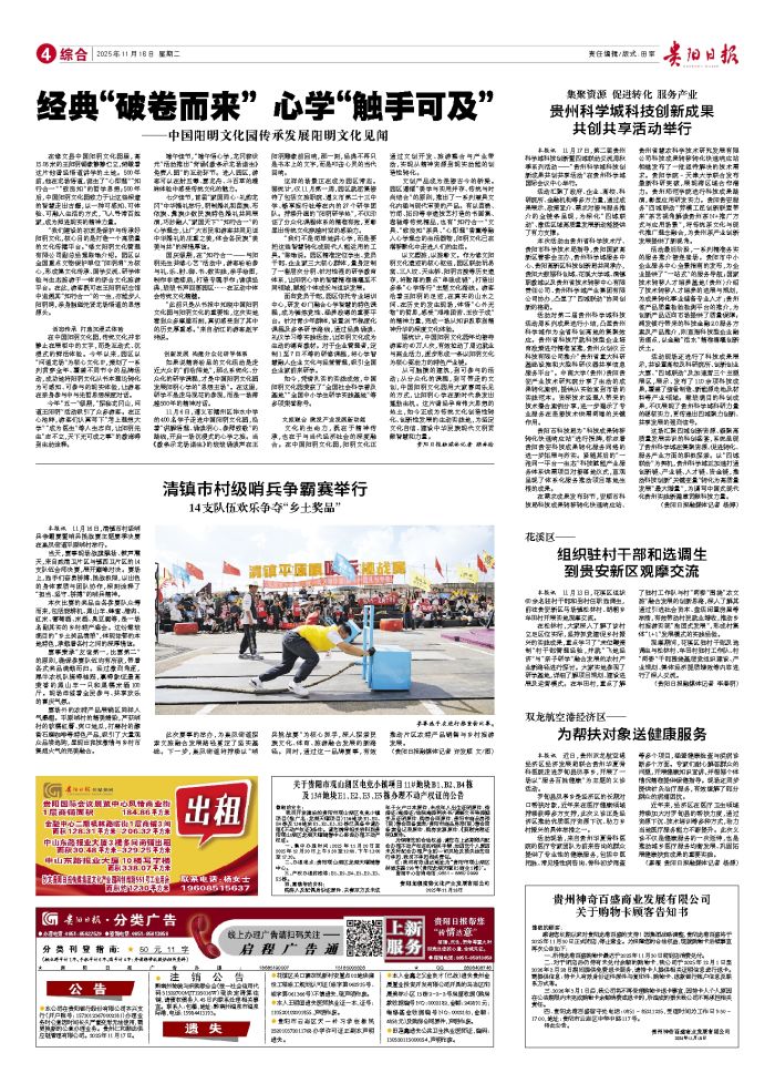 本报讯 11月17日,第二届贵州科学城科技创新暨四城联动交流周秋季系列活动——“贵州科学城科技创新成果共创共享活动”在贵州科学城国际会议中心举行。 活动汇聚了政府、企业、高校、科研院所