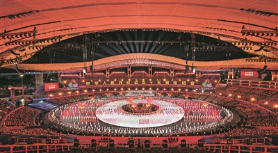 《海阔天空》唤醒青春记忆,《男儿当自强》昂扬心中热血;鳌鱼惊艳,醒狮欢跃,武术刚健,粤剧婉转……这场汇集三地智慧和力量的全运会“开场白”,高度浓缩粤港澳元素,收获满堂彩,为大湾区的集体记忆又添一页浓墨重彩的新篇。