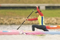 11月19日,第十五届全国运动会皮划艇静水项目女子200米单人划艇决赛在广州举行,贵州队选手帅常文夺得冠军。图为11月19日,帅常文在比赛中。 新华/传真