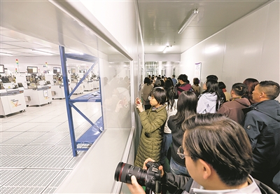 编辑记者在贵州安芯电子有限公司生产一线参观。贵阳日报融媒体记者 石照昌 摄