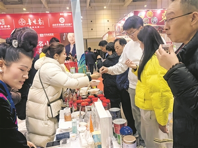 参观者在贵阳展台前品尝辣椒类休闲食品。 市市场监督管理局供图