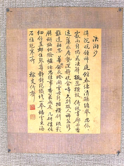 此次捐赠的乐嘉荃《浪淘沙词》书屏。
