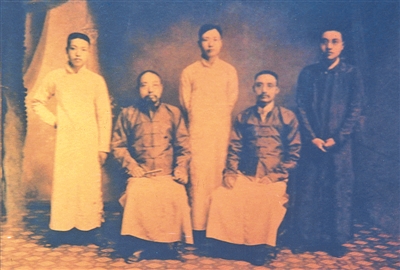 摄于1911年的乐嘉藻、嘉荃兄弟子侄合影,左起:乐森琏(字叔慎,嘉荃三子)、乐嘉荃、乐森璧(字伯恒,嘉荃长子)、乐嘉藻、乐森玟(字伯健,嘉藻长子)。