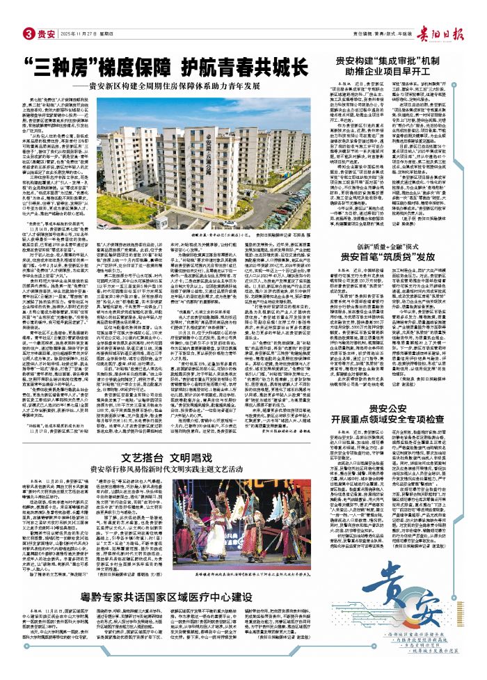 第七批“免费住”人才保障房顺利投放,第二批“补贴租”人才保障房开启线上选房签约,贵阳大数据科创城核心区新建楼盘学府世家营销中心投用……近期,贵安新区密集落地系列住房保障举措,有效破解青年群体住