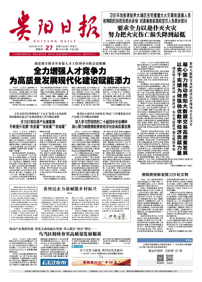 本报讯 11月26日,市委副书记、市长王宏主持召开贵阳贵安“十五五”新型工业化发展规划编制及重点产业集群谋划工作专题会。他强调,要深入学习贯彻党的二十届四中全会精神和习近平总书记在贵州考察时