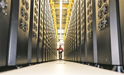 工作人员在贵安超级计算中心数据机房巡检。