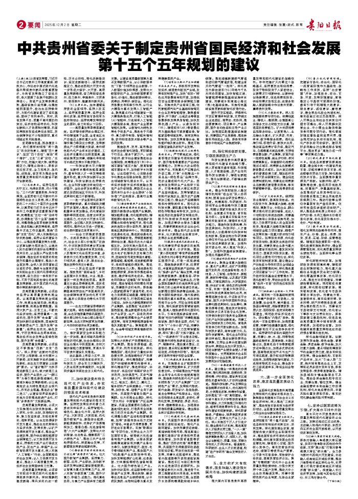 (二○二五年十一月二十日中国共产党贵州省第十三届委员会第八次全体会议通过) 中国共产党贵州省第十三届委员会第八次全体会议认真学习贯彻党的二十届四中全会精神,深入学习贯彻习近平总书记关于贵