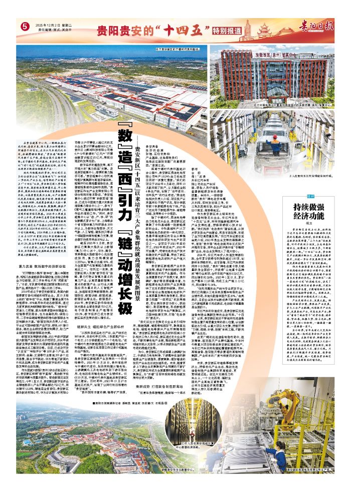在贵安超算中心内,一排排机房灯光闪烁、昼夜不息,强大算力如同澎湃江河滋养千行百业;在长江汽车现代化车间,机械臂精准舞动,“贵安造”新能源汽车驶下生产线,奔赴全国乃至海外市场;在宁德时代贵州基地