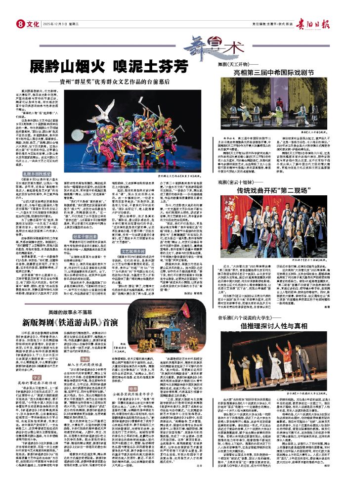 重庆群星剧院内,灯光渐暗。当大幕拉开,梯田在光影中延展,芦笙的韵律与劳作的节奏交织,舞者们以身体为笔,将水城农民画中浓烈奔放的线条与色彩泼洒于舞台。 “画里的人物‘活’起来喽!”人们低语
