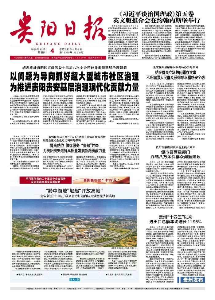 本报讯 12月3日,省委常委、市委书记胡忠雄赴南明区宣讲省委十三届八次全会精神并调研基层治理。他强调,要深入学习贯彻党的二十届四中全会精神和习近平总书记考察贵州重要讲话精神,认真落实省委十三