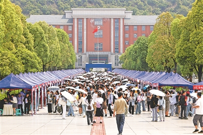 第十二届贵州人才博览会贵州师范大学站专场招聘会现场人头攒动(本报资料图片)。